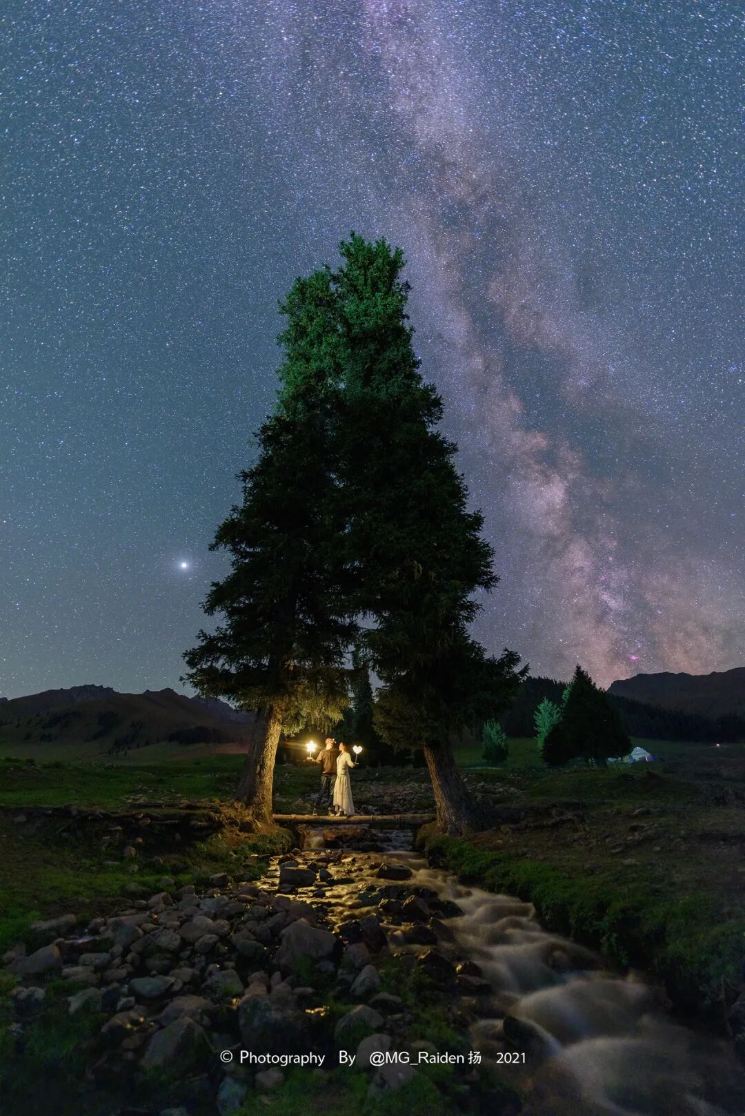 渐渐地,当工作室走上轨道后,能腾出时间的我变成了带着妻子“有天象必追、全国到处跑”的星空(狗粮)摄影师。作品要么是拍妻子的人像写真,要么就是拍我们在画面中秀恩爱的合影,特别是星空狗粮作品。