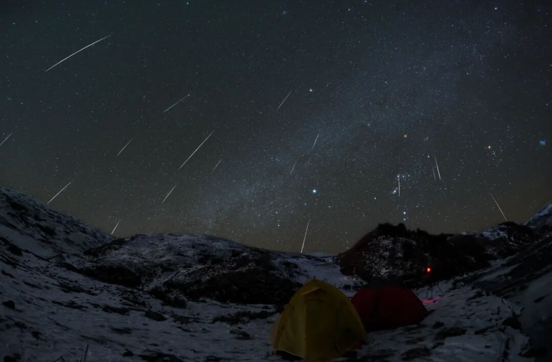 冬季的川西夜晚总是寒冷的,在双子座流星雨极大值来临的这一夜,和小伙伴们在帐篷外等了三个小时,看到了足够的流星后,设置好相机参数,便回到了帐篷中休息,第二天起来收相机回看前一晚拍到的照片,我想,就这样睡在满天星河下,夜幕中一颗一颗的流星划过天际,以往梦中关于星空关于流星雨的场景,也不过如此吧。