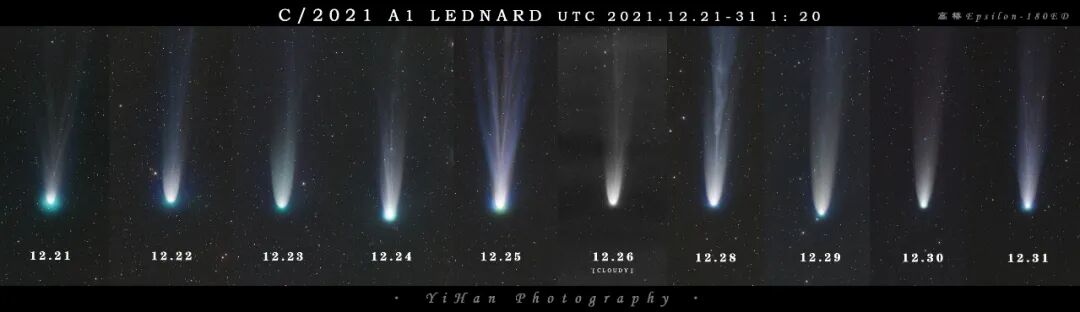 智利昴星团远程台高桥大黄跟拍A1伦纳德彗星,记录每天变化情况。