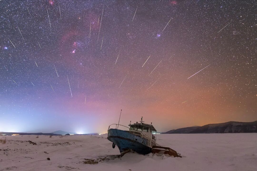 零下26°C,往返300公里,寒地守候8小时,拍摄照片7000余张,只为2022年第一场流星雨。象限仪流星雨虽然是北半球三大流星雨之一,但因流量不稳定,一直倍受诟病,被戏称为鸽子座流星雨。今年鸽子不鸽,一整夜的拍摄,换来的是百余颗流星划过天际,定格在这个优美的夜晚。所以,梦想还是要有的,万一实现了呢?