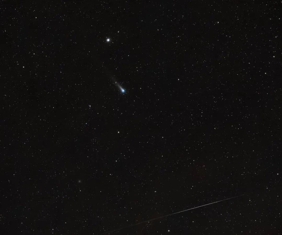 能够同时抓拍到彗星、星团与流星,已是幸运。