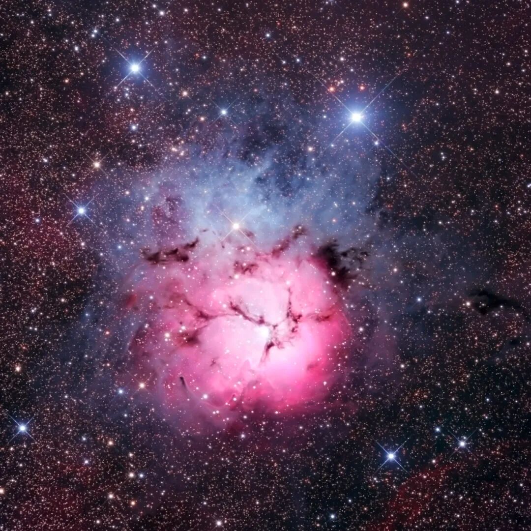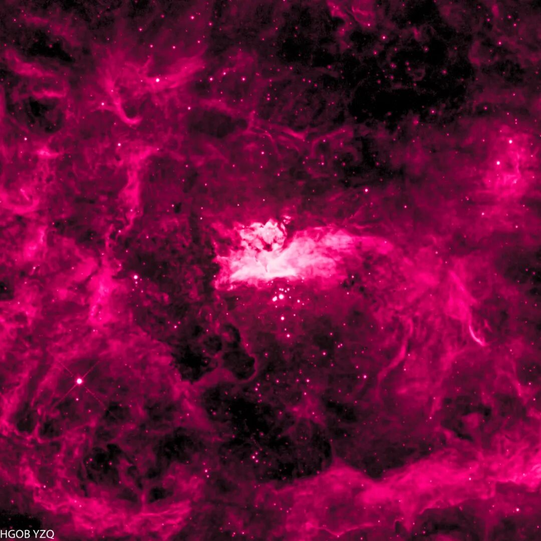 Pismis 24是位于天蝎座的大型星云NGC6357中的一个疏散星团,是大质量恒星的摇篮。因为它的形状莫名神似魔法少女小圆,甚至连发饰和马尾都清晰可见,也有部分阿宅称其为“圆神星云”,是一个流行文化与天文碰撞产生的有趣轶闻。