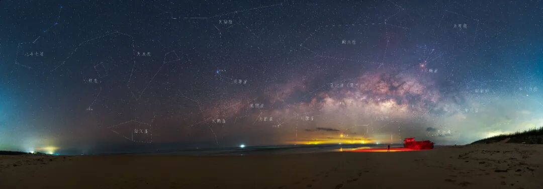 参数 / 天空:ISO3200,F1.8,20s,3张接片;地景:关闭赤道仪,F1.2,10s
