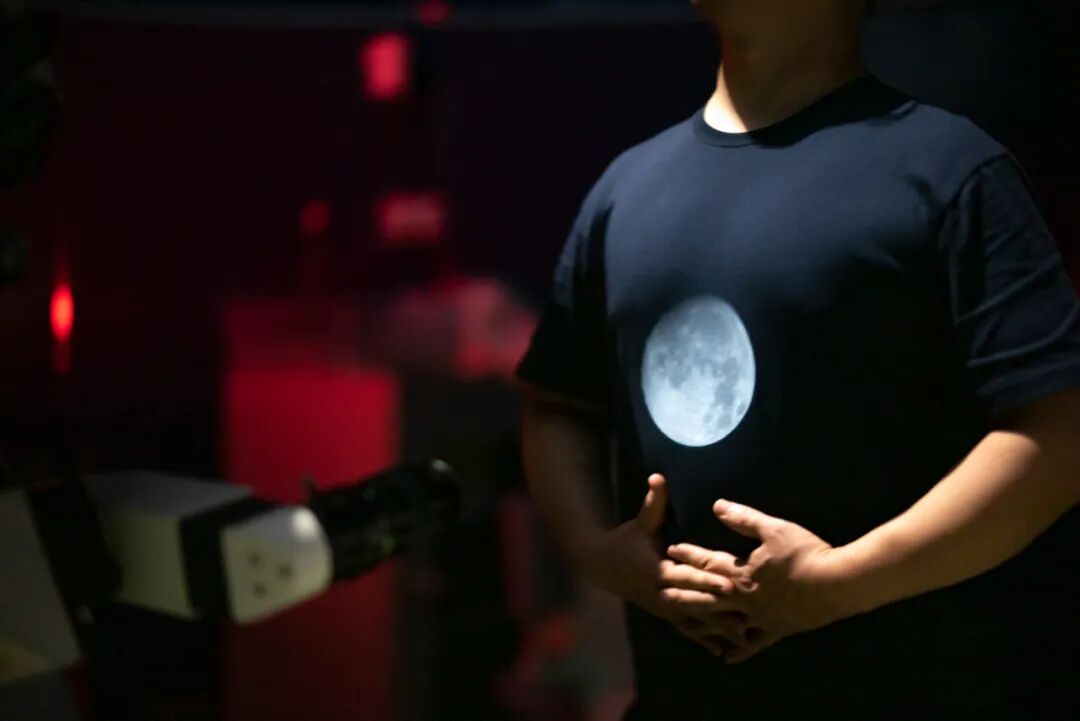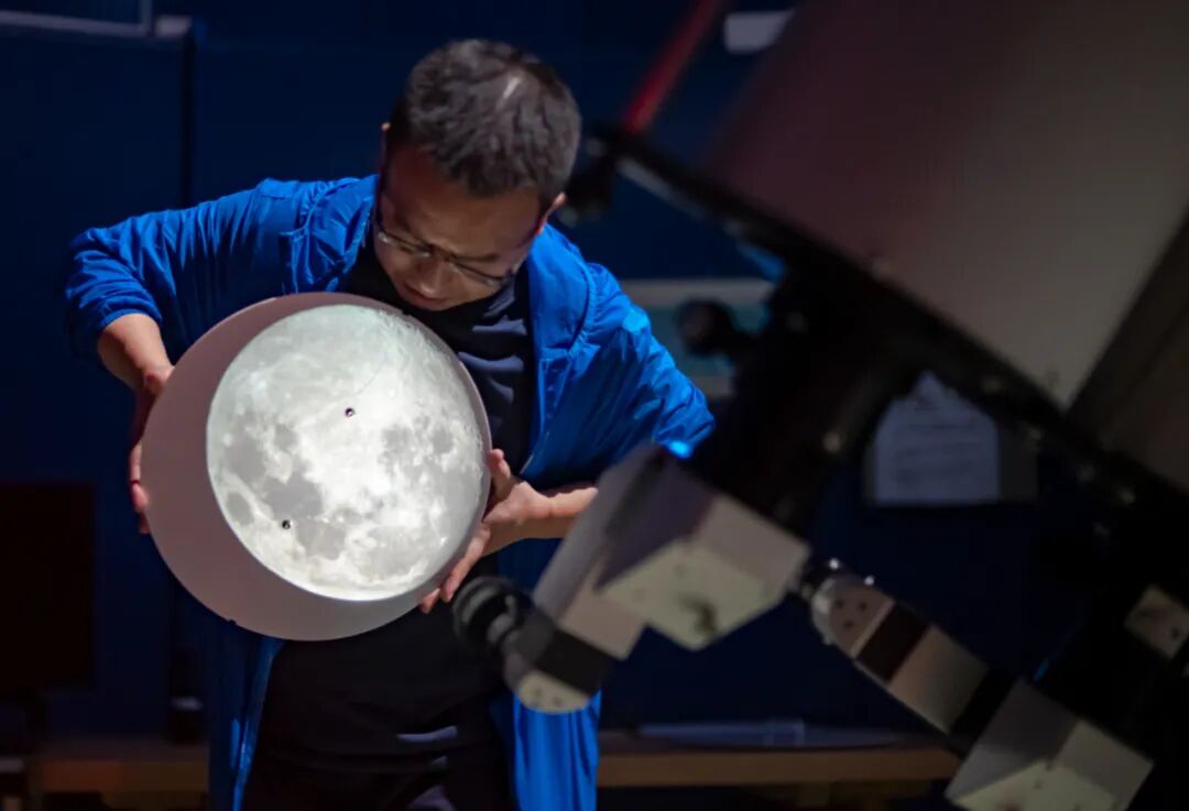 用大口径天文望远镜看月亮是很刺眼的,但如果你将望远镜中的天体像投射到一个平面,甚至你的衣服上,它的亮度就会大大降低,而且衍生出很多种玩法。其实这种投影方式我们经常在观察日食时使用,只不过这次的目标天体不是太阳,而是我们熟悉的月亮。用来投影的设备是位于深圳市天文台的APM 304MM F7.5双筒望远镜。