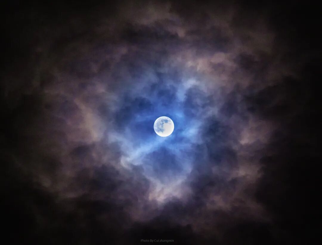 疫情封控期间,已经不记得多久没出过门的我,有幸在圆月的夜晚遇上了月华,从阳台的窗口望出去,一轮圆月在云中穿梭,经不住感叹,心华如月,月华如水,水流何方。愿上海的疫情封控早日结束,让整座城市恢复以往的繁华和喧嚣。