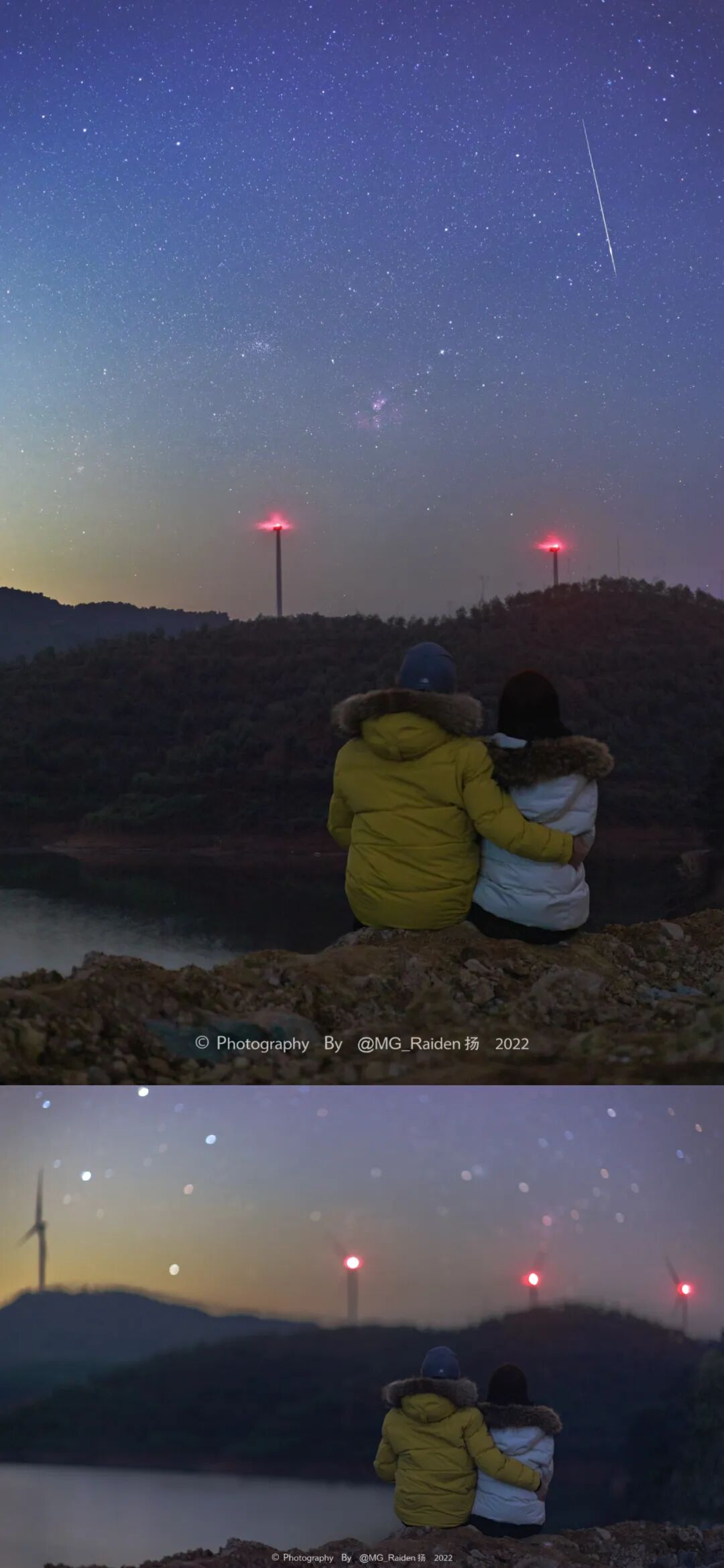 参数 / 天空:赤道仪,f2,ISO3200,多张堆栈累计曝光22min;地景:f1.4,2s,ISO800