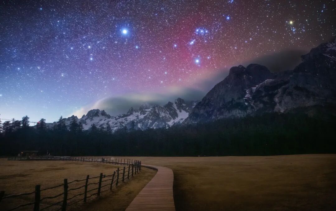 每年的春天,是拍星最舒服的日子,上半夜深邃的夜空中,钻石般闪耀的冬季大猎户,西悬在玉龙雪山上,马上就要离我们而去。