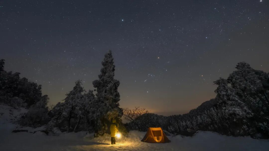当星空遇见雪夜,四明山便成了童话世界!难得月相不错,难得南方下雪,更难得雪后的晴天。在多云中捡漏了两个小时的窗口期,记录下这张弥足珍贵的宁波雪夜星空。