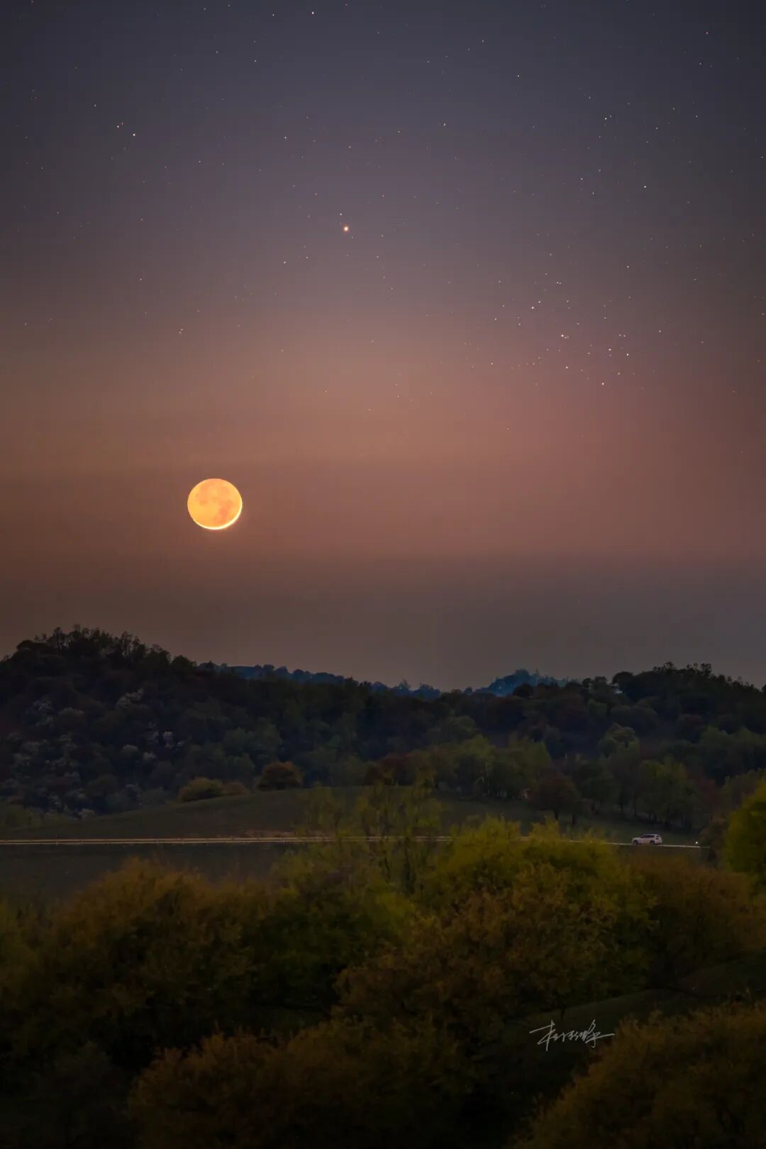 “星星点灯,照亮我的家门,让迷失的孩子找到来时的路;星星点灯,照亮我的前程,用一点光温暖孩子的心。”——郑智化。很久以前听到这句歌词时,我脑海中就浮现出这样一个画面: 在无尽黑夜中,漫漫长路,星辰照亮道路,为我们指引回家的道路。这一次在拍摄前,我就已经提前一个星期用巧摄找好地点,预想好构图。于是2022年5月7日凌晨,在漫无边际的黑夜中,我终于将这脑海中的画面具像化。