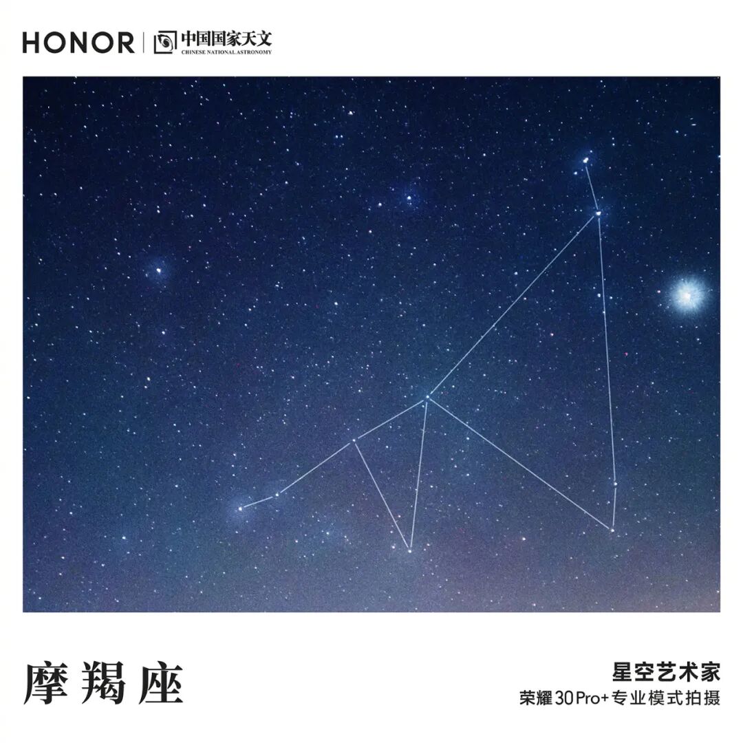 黯淡难辨的摩羯座最亮的恒星只有3等,天区面积也是黄道星座中最小的一个,但它却是个古老的星座。古巴比伦和亚述人把它看成“羊和鱼的合体”。希腊天文学家进而将它看成为了躲避怪物提丰变成半羊半鱼怪兽的牧神,潘恩。