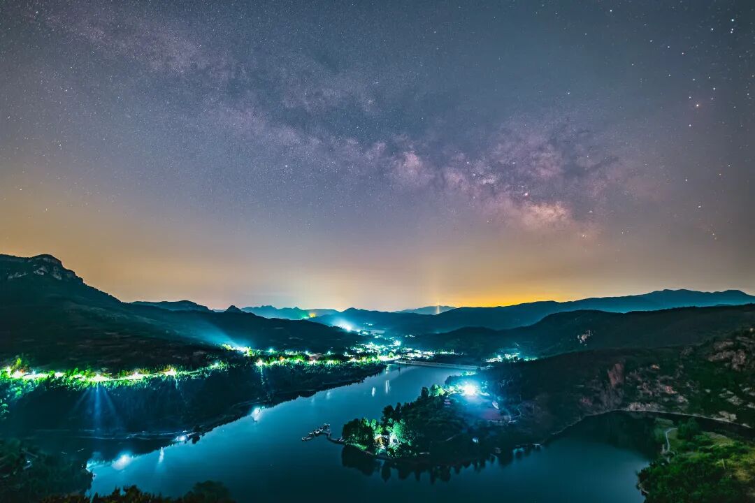 一直想拍到银河与灯光结合在一起的照片,愿望达成!