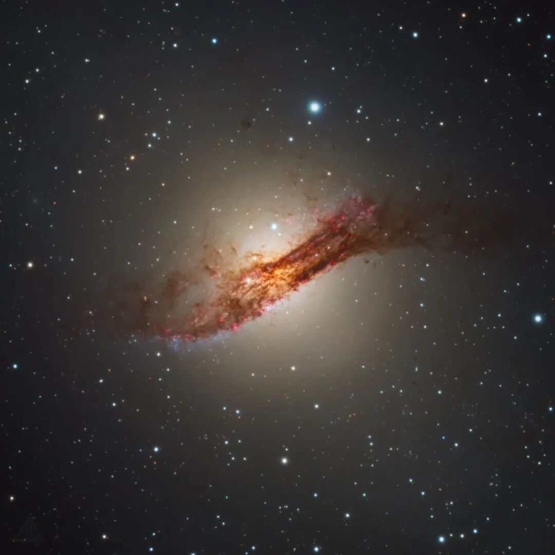 半人马座A位于南天的半人马座内,大小约有6万光年。半人马座A又称为NGC5128,除了上述的尘埃带外,它和一般的椭圆星系比起来也含有较高比率的蓝色年轻恒星,而且是很强的电波辐射源。证据显示半人马座A可能是两个正常星系互撞的产物。在碰撞的过程中,造成了许多年轻恒星的诞生。