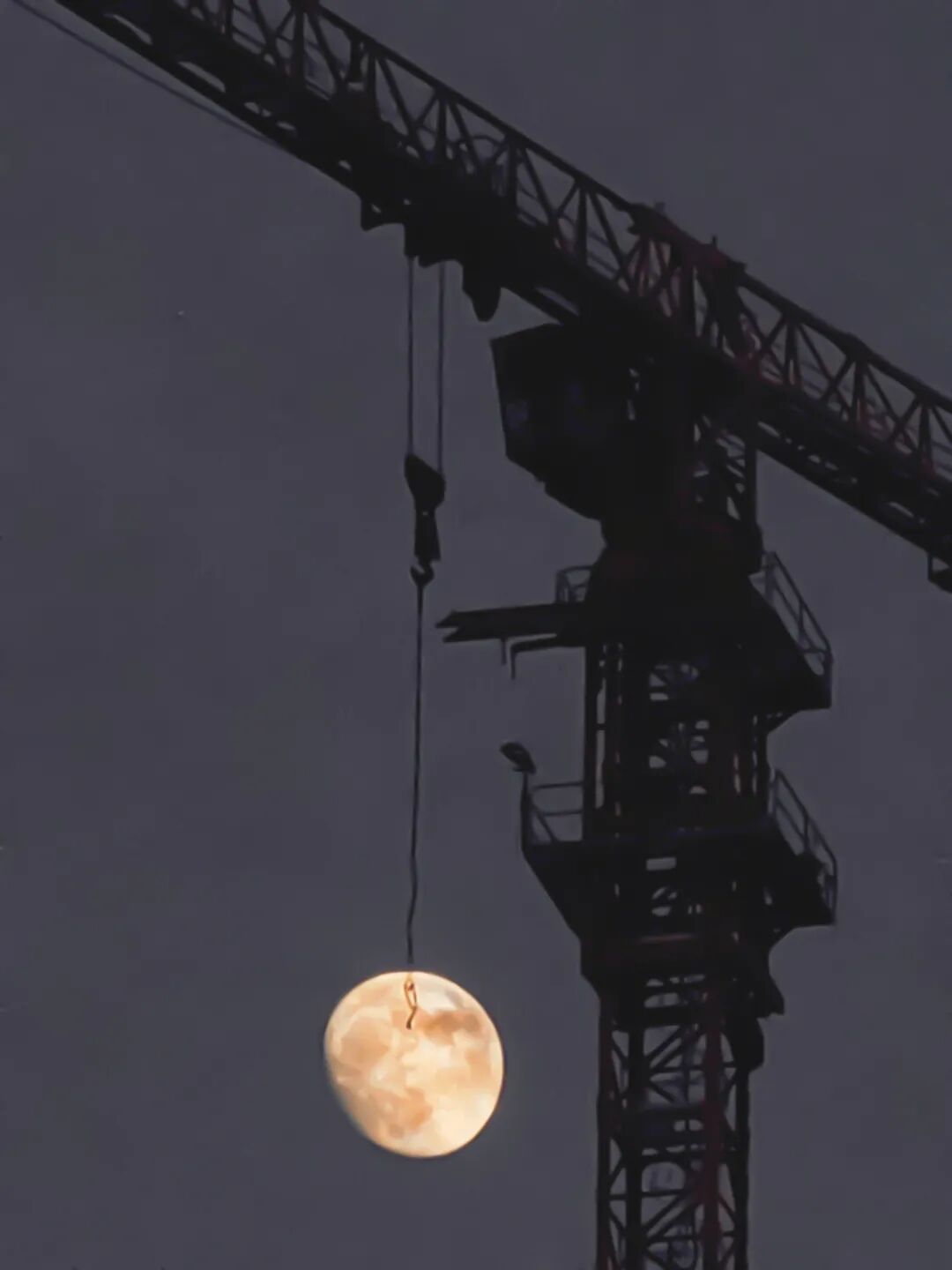 下班回家路上,刚巧看到月亮穿出云层,和一个塔吊相遇,就找好位置,计算好构图。随手带的也只有手机,只好用它拍了。但是手机毕竟底小。夜色拍出来的画质比较渣,回来用PS进行降噪。