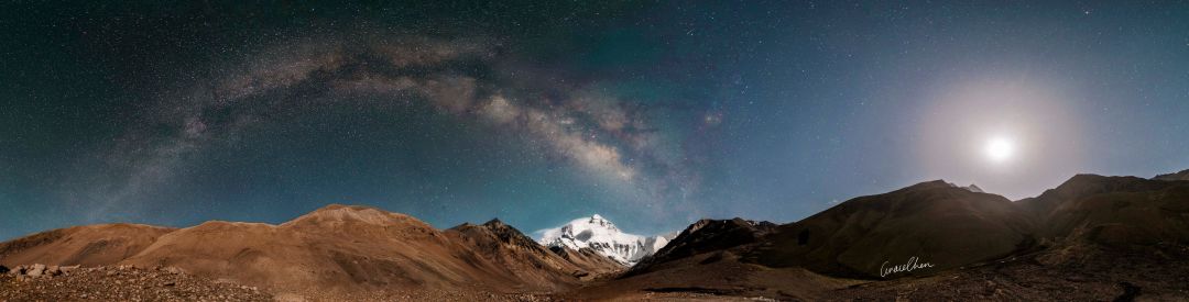 七月盛夏,璀璨银河横跨在珠穆朗玛峰之上,上弦月照亮了大地。在寒风烈烈的高原上与世界之巅凝望,星月同辉的浪漫和热烈给了我无限的力量。