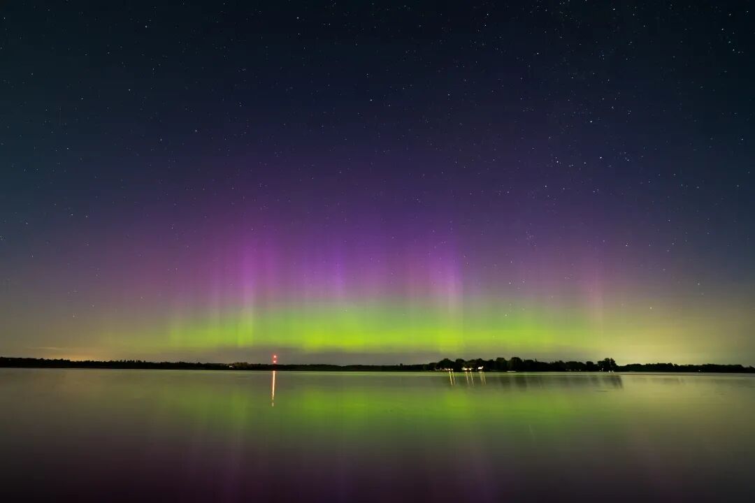 晚上微信圈朋友说最近极光指数比较高KP5,立刻决定开车到最近的湖边去试一下运气。刚架好三脚架,北方的天空就开始了一场极光表演。