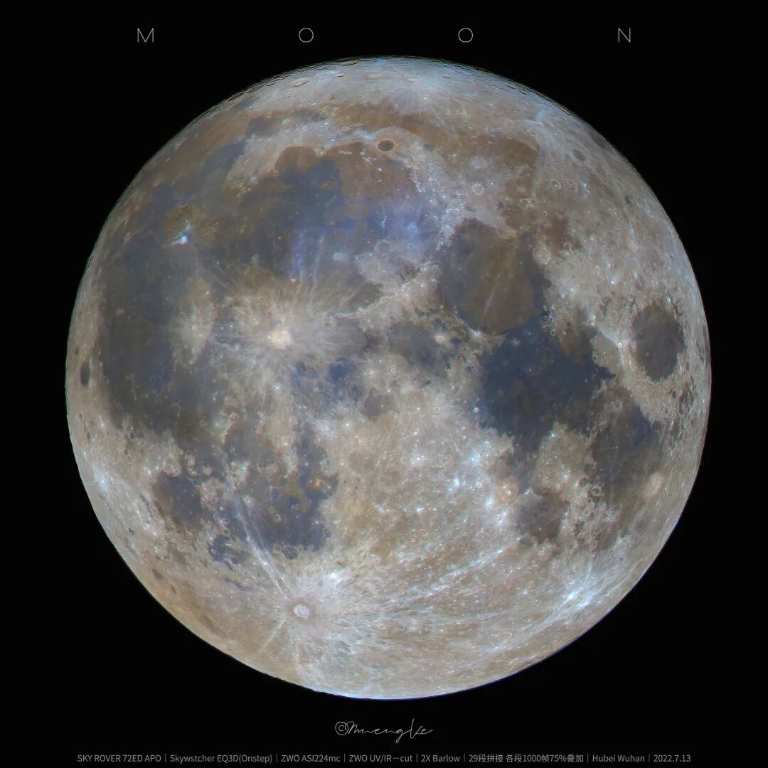 2022年7月13日“超级大月亮”再次现身夜空,圆圆的满月从东方偏南(方位角127.1°)的地平线冉冉升起!
