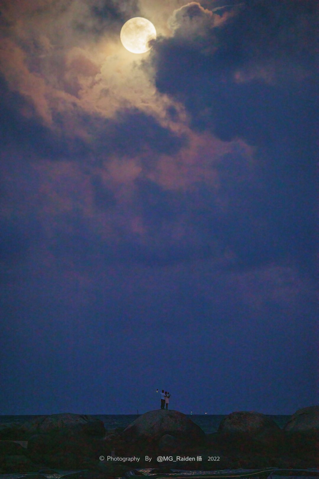 2022超级月亮(近地点满月)在北海北岸众多游客和摄影爱好者的欢呼声中,从万春亭上方缓缓升起,有幸记录这美妙瞬间。