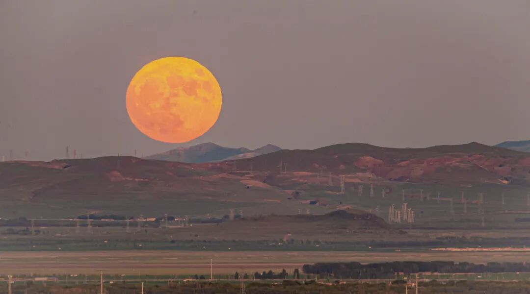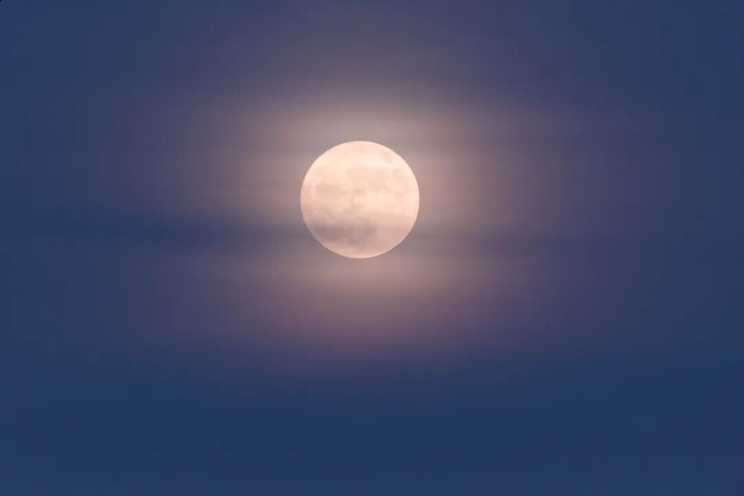 薄薄云层给超级月亮蒙上了一层温柔的纱。