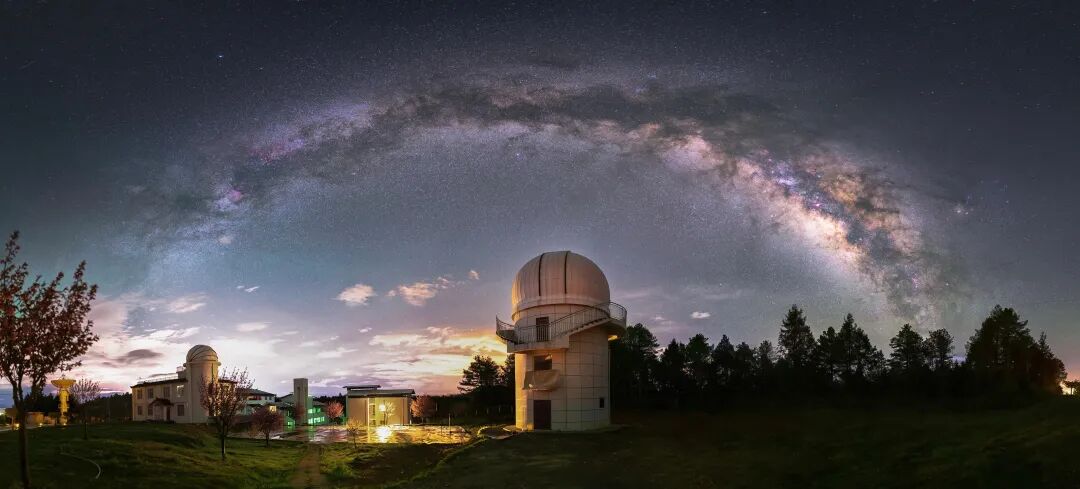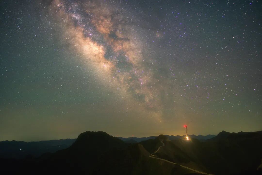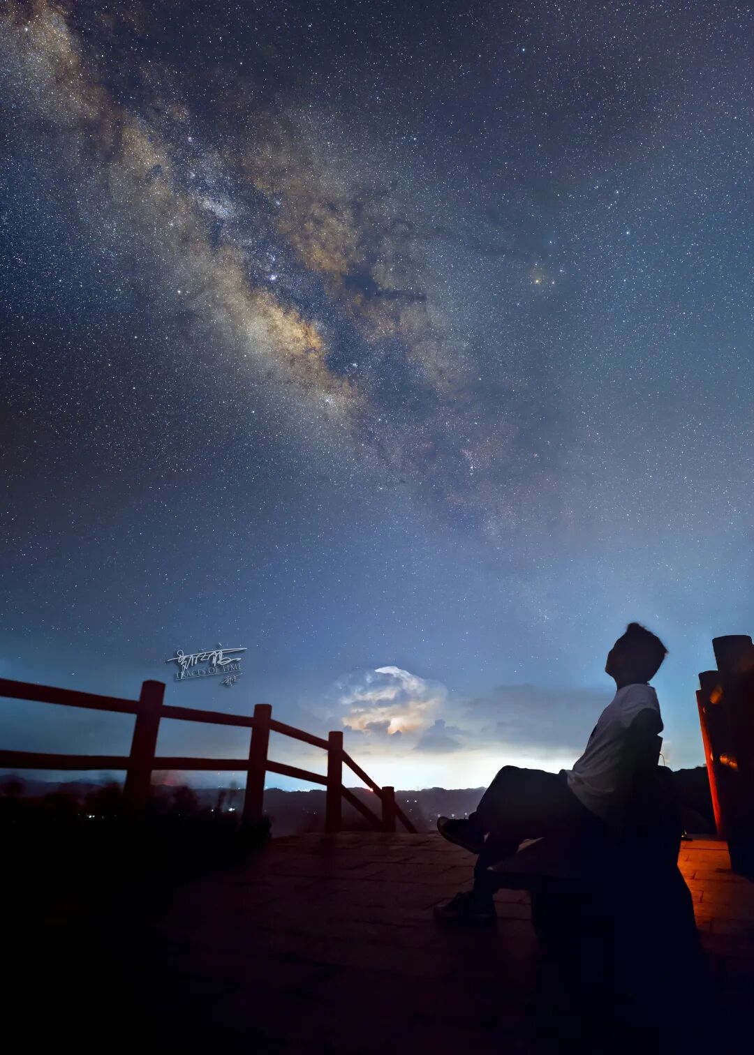 云图显示雨后80%的云量,但还是决定去试试运气,第一次雨夜去追星。后半夜雨停了,云层散开,银河拱桥横跨在圆顶之上。