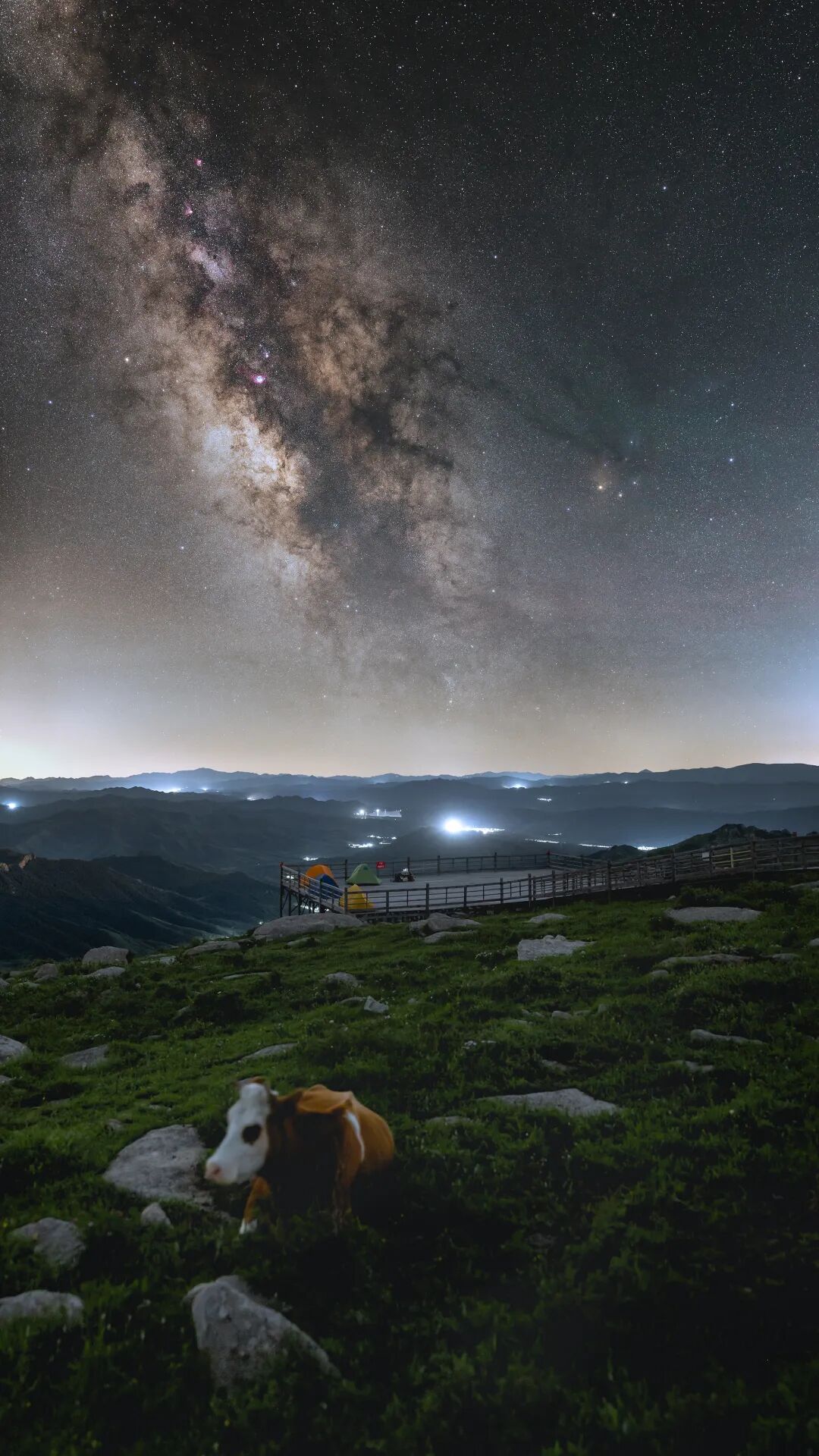 酷热满和在空气里面,到处发挥着盛夏的威力。冰山梁,第四纪冰川遗迹,主峰海拔2332米,距离北京市中心160公里。我们逃离城市的热浪 ,寻找星辰与一个清凉舒爽的夜晚。高山草甸与牛群也是这里不可或缺的元素,万物皆有灵,月亮下落,星辰渐出,肉眼可见的璀璨银河横跨天际。