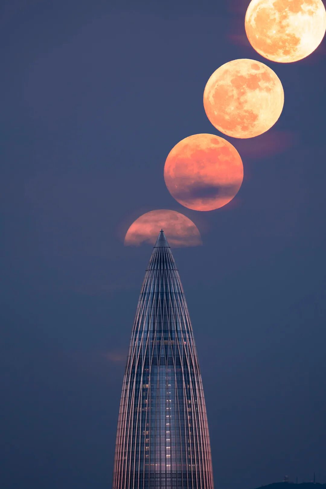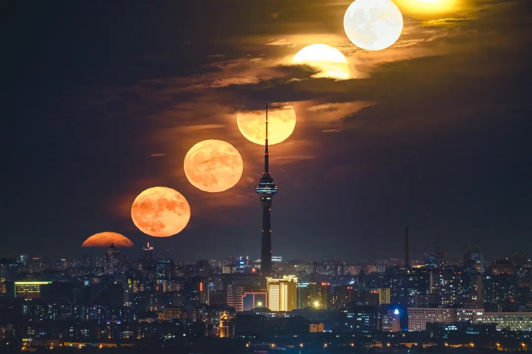 农历六月十六,月亮从地平线升起落在了中央电视塔顶端电视塔顶端。北京拍摄当天空气质量优,于是来到规划好的地点,拍下了这张图。7张月亮的序列,地景采用16张堆栈平均值降噪。