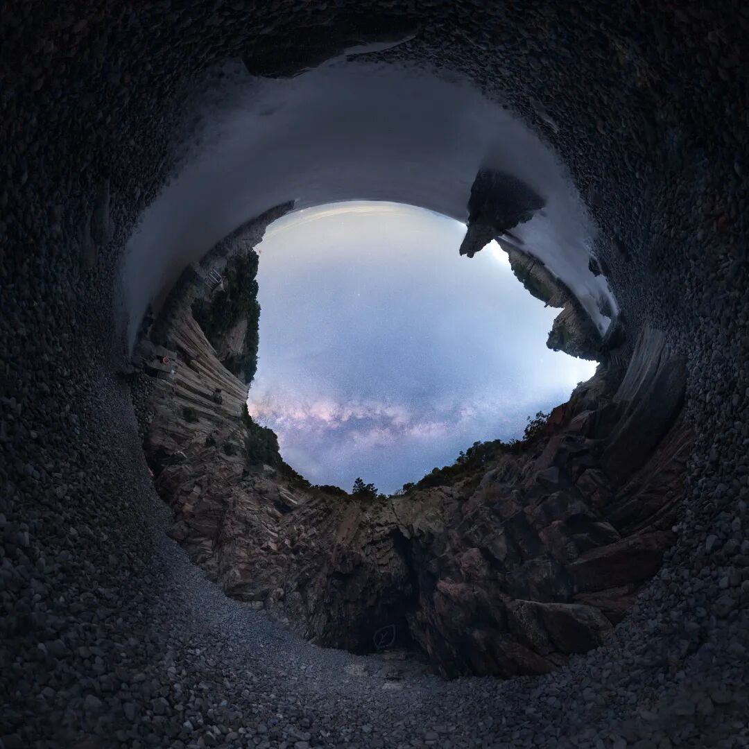 这里的石林柱状节理群,纵横交错,是火山活动留下的痕迹。海浪裹挟着海风,一遍遍冲刷鹅卵石。银河横跨天顶,水天一色。