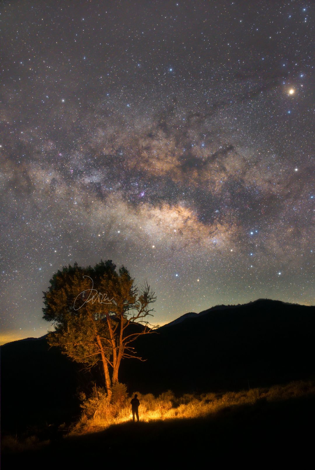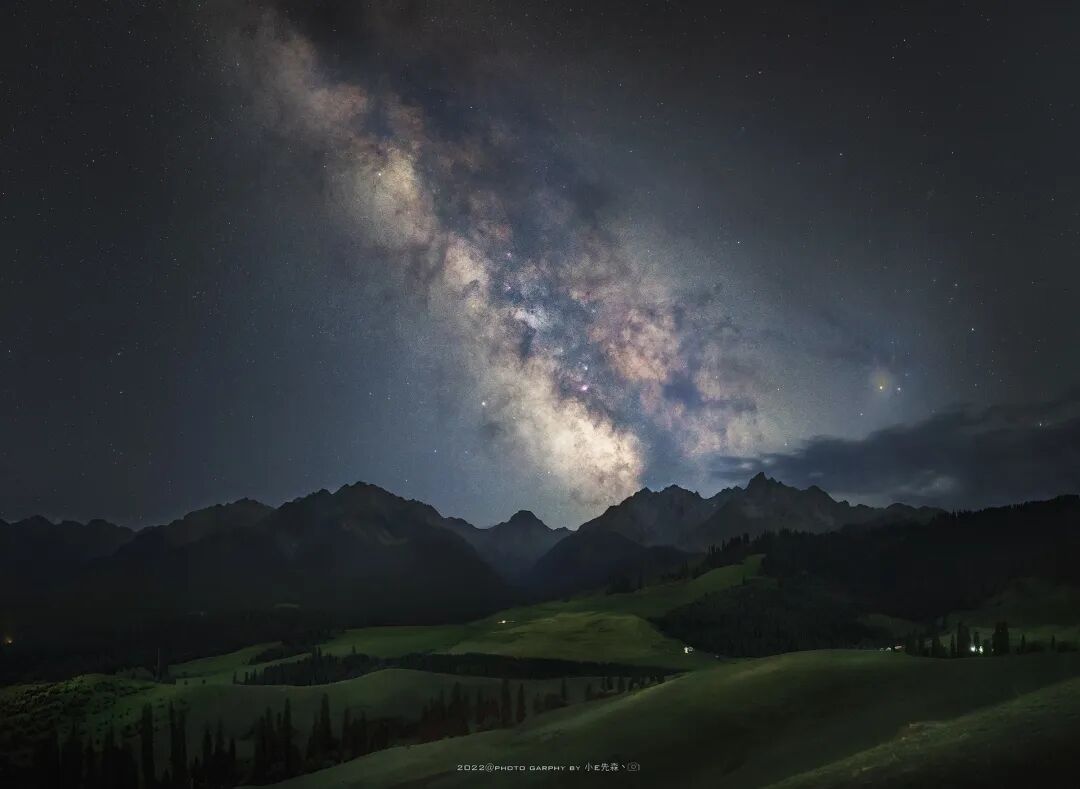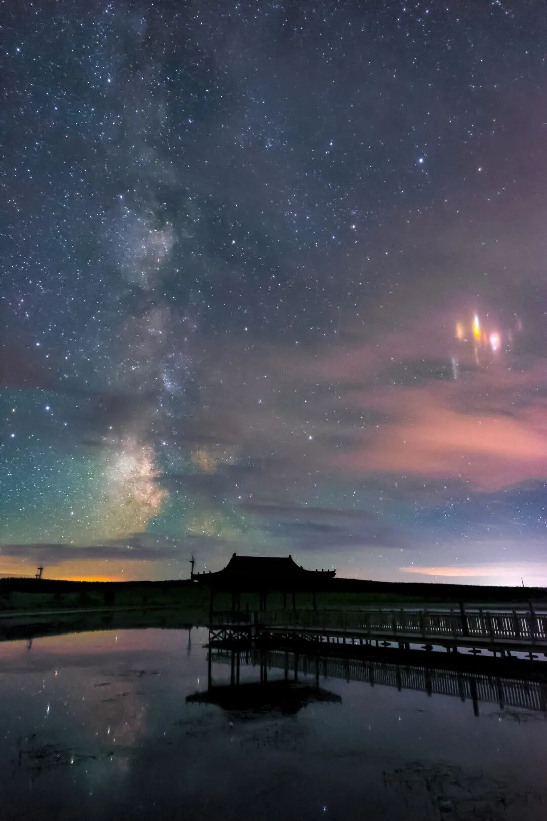 许久未仰望星空,夏季的银河依然璀璨。寂静的山前,人间的灯火如海闪烁奔流,抬头凝望,白色的银河、心宿、夏季大三角跃然在眼前。现代文明与古老恒远的星光,在这里碰撞交汇。天阶夜色凉如水,坐看牛郎织女星。给岁月以文明,每一个闪亮的星星,古人都赋予了一个个动人心弦的故事,在旷野寂静下,聆听那从古到今的声鸣。牛郎、织女,七夕之时,鹊桥之上,浪漫而凄美。愿夏夜灿烂,伴你入梦。