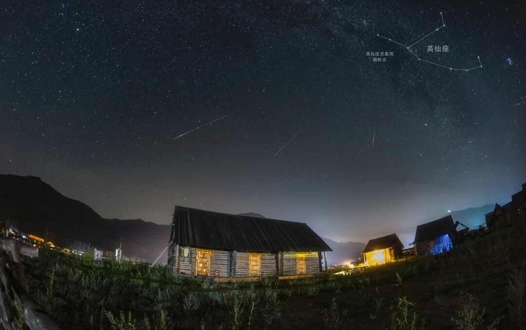 在新疆美丽的喀纳斯湖旁,有一个小巧的山村——禾木村,它素有“中国第一村”的美称,由于此地处于波特尔1级暗空环境,也被人称为星空之村。我到达此地时是2022英仙座流星雨极大值的前3天,然而当天90+的大月亮也使得繁星并没有显得那么璀璨,也给拍摄带来了一些干扰,但一晚的守候,还是成功捕捉到了3颗从月光中突围出来的英仙座流星,也算是达成了在星空之村拍摄流星的愿望。