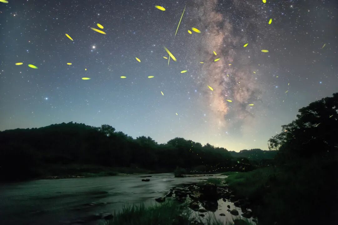 在外求学的时候,一直很馋家乡的萤火虫,可惜回来的第一年也没找到几次拍摄的机会。原以为已经错过了今年的萤火季,没想到在这片湿地里还有许多飞舞的精灵,次日夜空晴朗,当即和伙伴们出发,不给自己留下遗憾的机会。