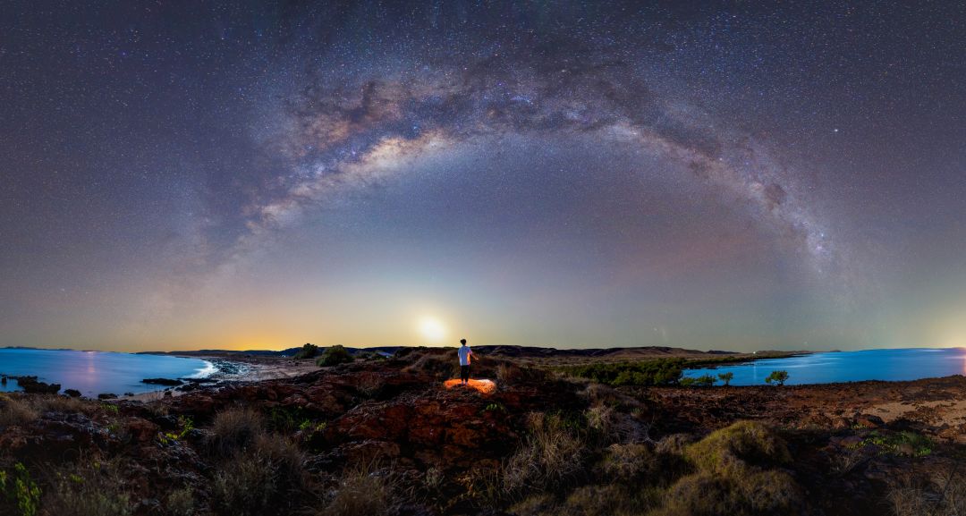 北半球迎接夏季到来之时意味着南半球开始转入冬季。拍摄这张图片是我在巧摄一个月前规划的,那天刚好是周日于是就顺便出去露营,通过踩点后发现一处地方,左右两边是海,银拱正好横跨天际连通两侧海岸。拍摄时间凌晨一点,此时的银拱非常高,月亮已经升起。那晚两个人被蚊子咬了一个晚上,不过还是幸运的没有错过这次银河之眼。
