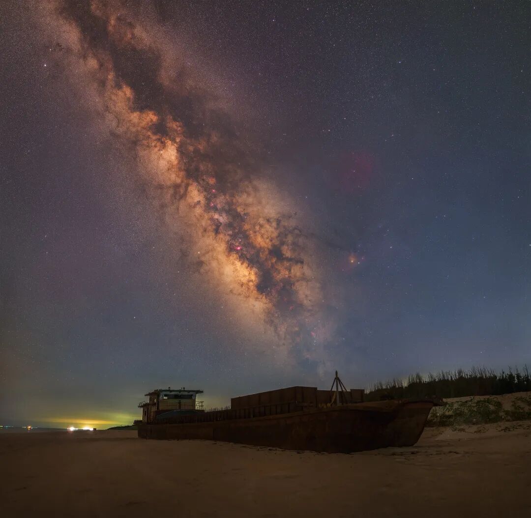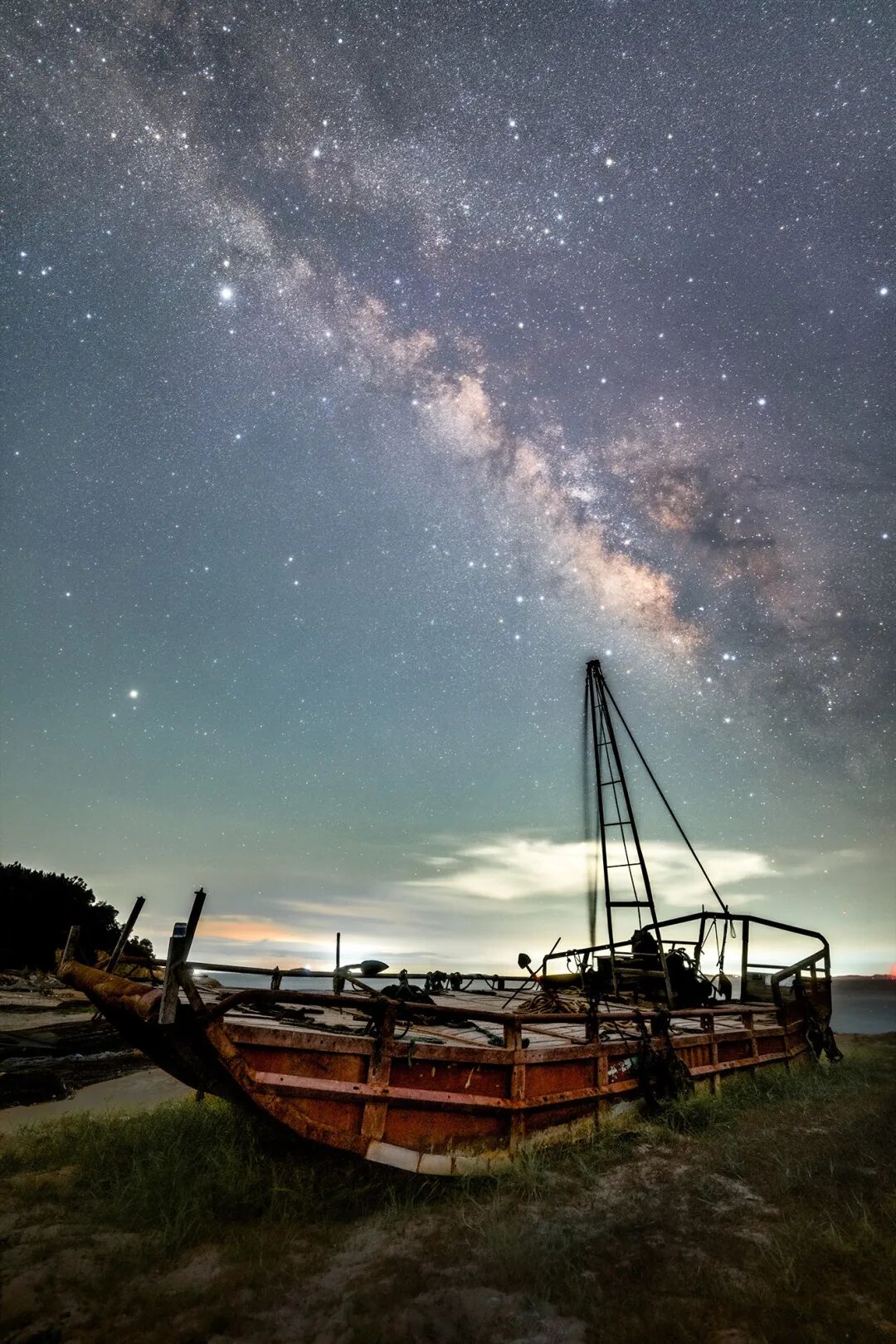 第二次独自一人来到这片无人问津的海滩,恰好一整夜晴朗无云,清晰的银河悬在船上,海面微风徐徐,躺在沙滩任由露水凝结,既感伤绝胜无人共,又庆幸独享这绝胜。