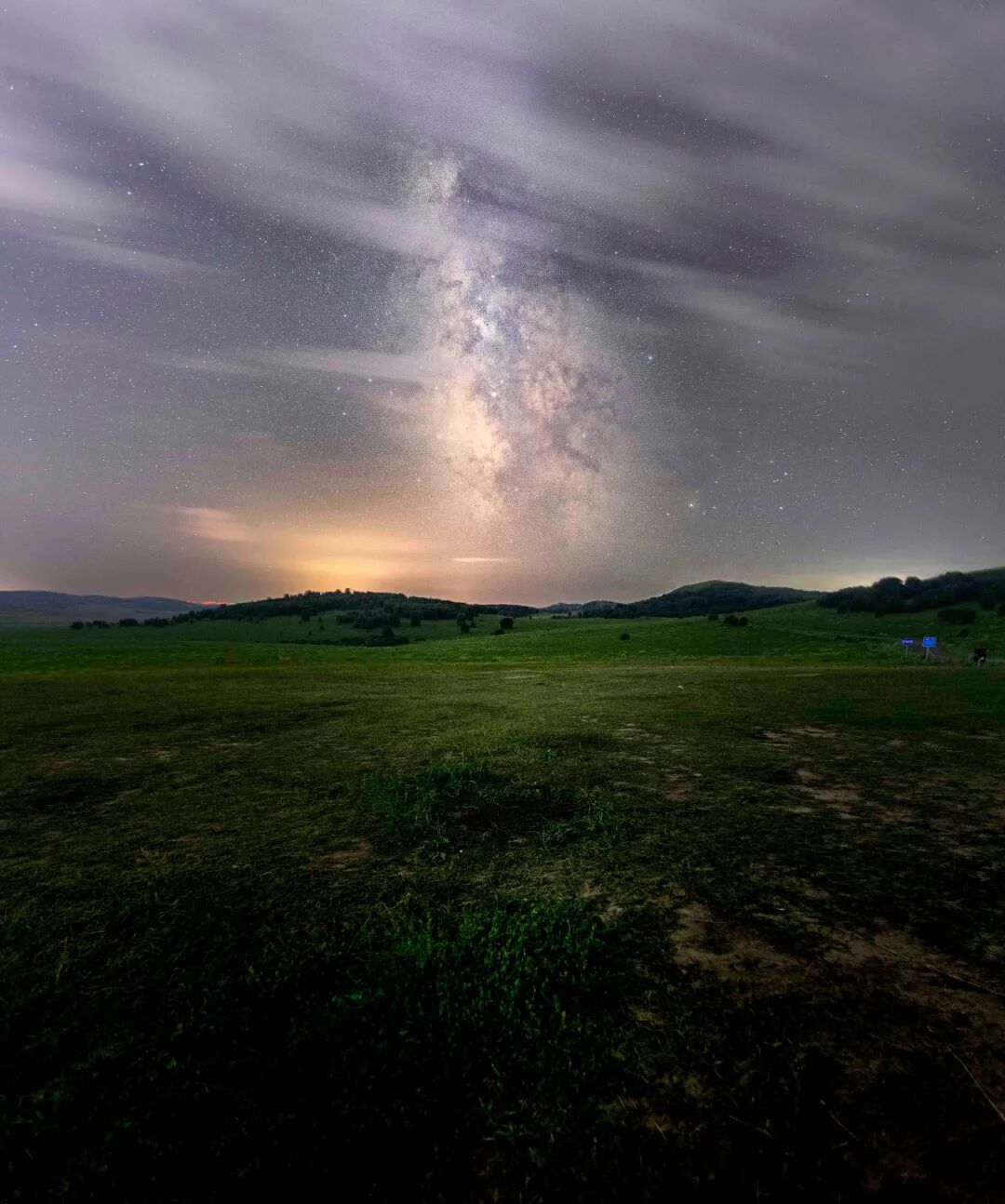 经历大风、暴雨、冰雹,守得云开雾散,星河长明。目睹银河落入广阔草原,按下快门,捕捉穿越亿万光年的璀璨。