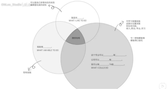 三个圆的交集就是最理想的状态,你知道自己是谁、要去哪以及怎么去。