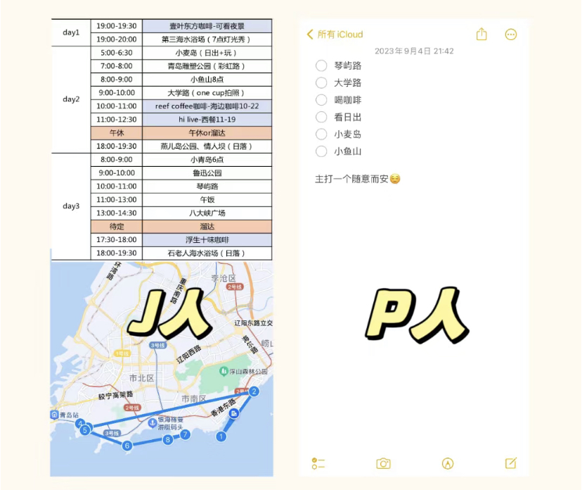 J人做事倾向于有计划、有框架的思维,而P人则喜欢顺着一个大致的方向自由发挥。