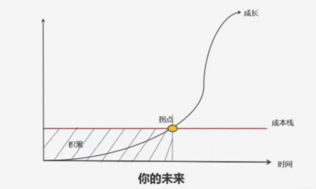 每天对一项技能精进一点点,前期进步缓慢,随着时间的增长,经过某一个拐点,你的水平将会产生爆发性增长,这是具有指数级增长力的强大的力量(如下图)。