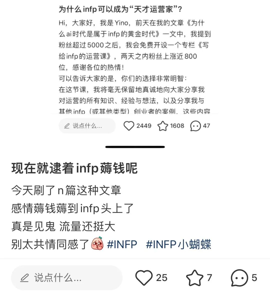 这个账号的运营作为一个创业项目,在后续的成长过程中我当然会尝试商业化的运作,作为一个创业者和直球INFP,我不觉得这是什么需要遮遮掩掩的事。但这一步还很遥远,我不觉得我现在能做好,因此我目前只想尽善尽美做好内容。因为大家的每一份喜欢和赞美,都成为我真挚的感动,进而成为一种责任,我相信INFP会懂这种互相成就的感受。