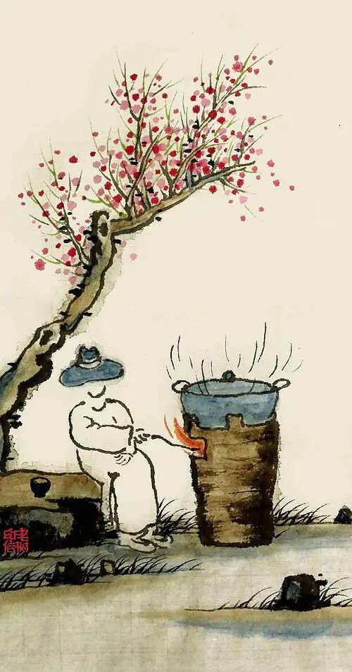 帘卷春风啼晓鸦,闲情无过是吾家。青山个个伸头看,看我庵中吃苦茶。