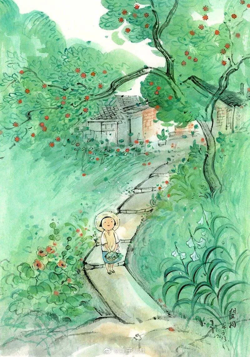 篱落疏疏一径深,树头新绿未成阴。儿童急走追黄蝶,飞入菜花无处寻。