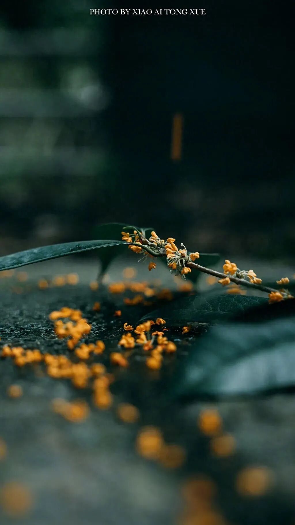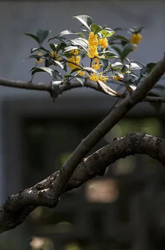 桂花之美,美在颜色,轻黄浅黄和金黄,温顺且低调,却令人移不开目光,谢懋有个新奇的比喻:“绿云剪叶,低护黄金屑。”