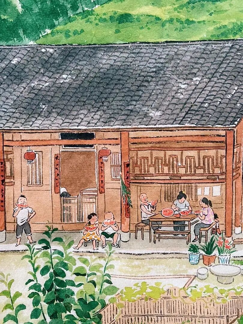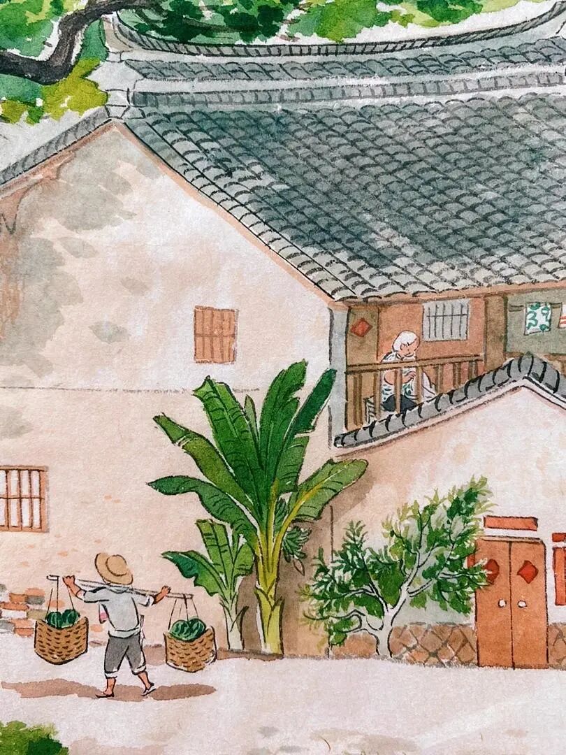 十里西畴熟稻香,槿花篱落竹丝长,垂垂山果挂青黄。