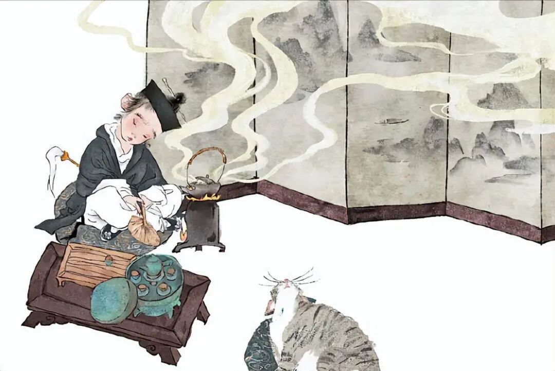 风炉煮茶,霜刀剖瓜。暗香微透窗纱,是池中藕花。
