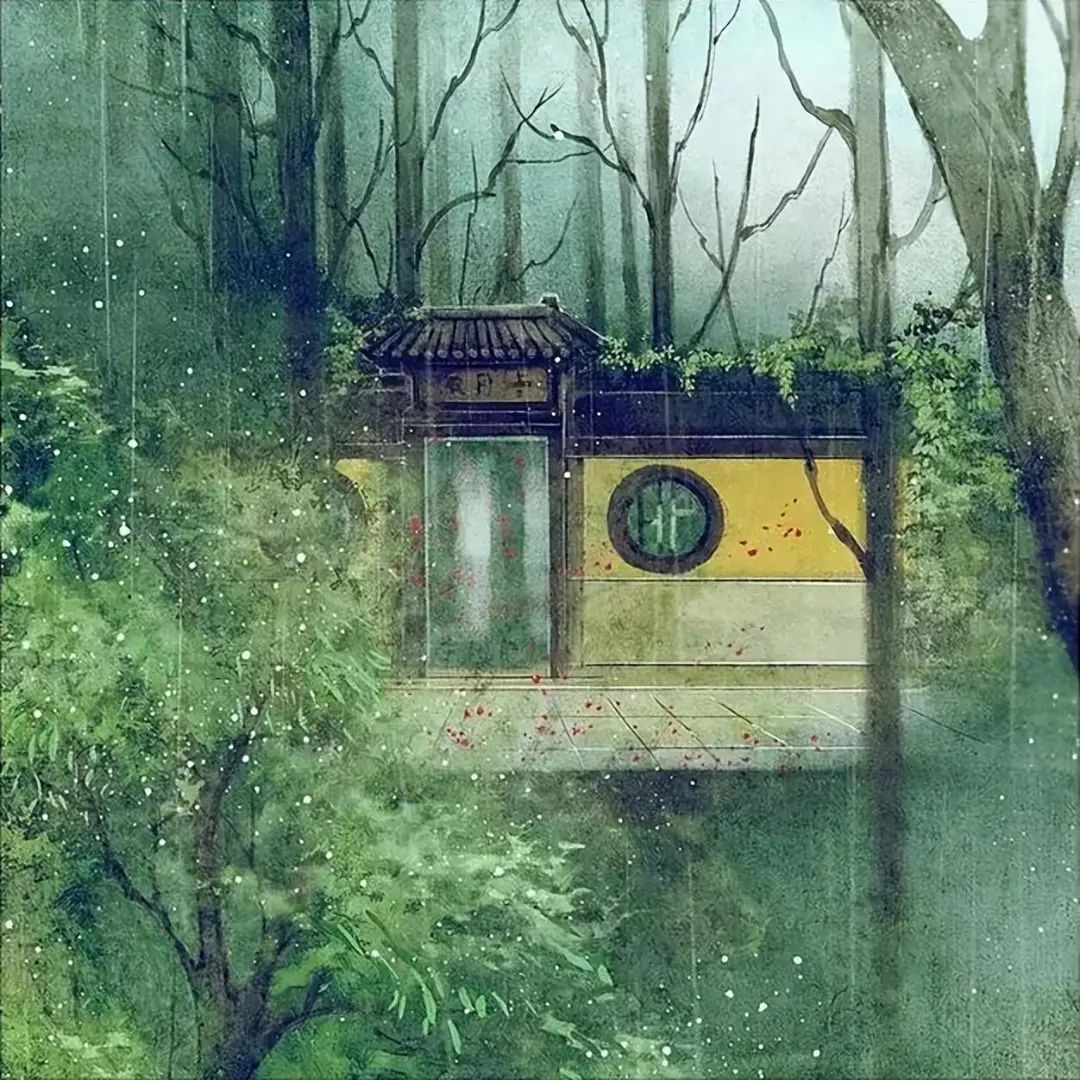 这次写“雨”的佳句,我也是着重场景感,只有两三句言情理。“山路元无雨,空翠湿人衣。”“纵使晴明无雨色,入云深处亦沾衣。”这两句我是爱得不行,仲夏时节,空中潮湿温润,虽然跟雨无关,但见过自然的人都懂,青翠欲滴,群山苍翠,水汽逼人的感觉。