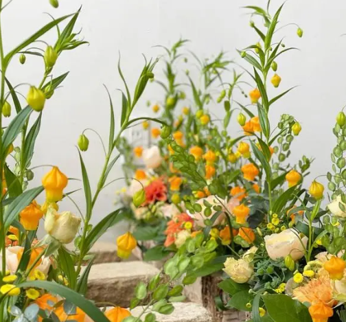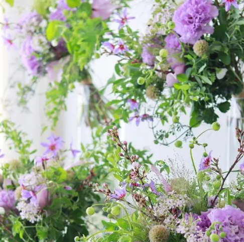 清新自然风花束通常使用具有自然感和鲜活度的花材,如野花、小花、草本植物等。这些花材的特点是形态简单、色彩柔和,让人联想起自然界中的花朵和植物。