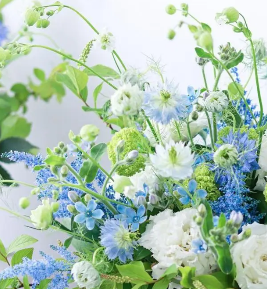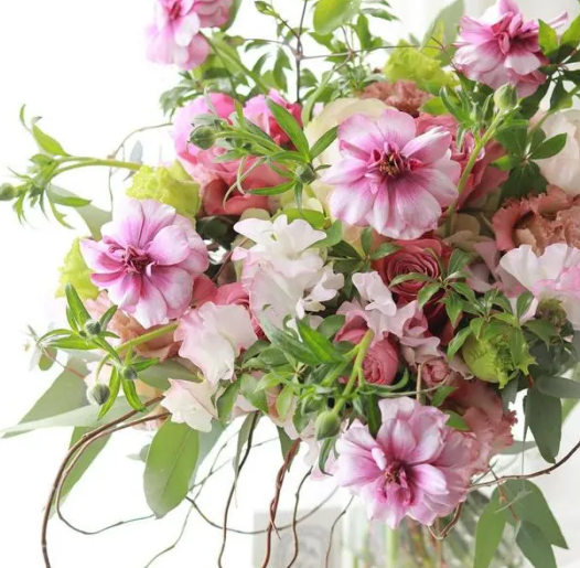 清新自然风花束中常见的色彩是柔和、清淡的,如粉色、淡紫色、淡蓝色、淡黄色等。这些颜色给人一种轻盈、优雅的感觉,与自然和谐融合。