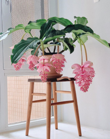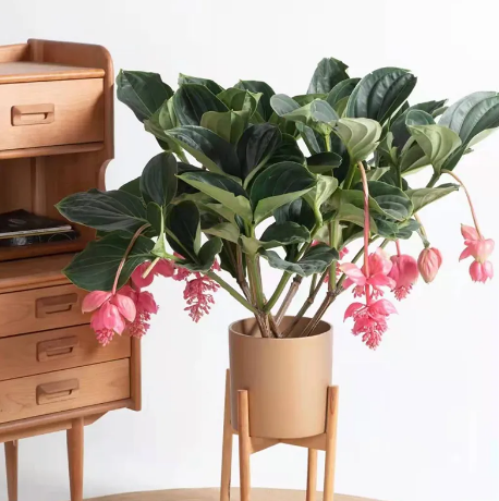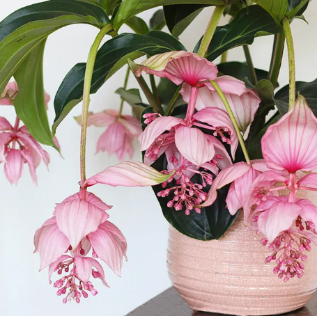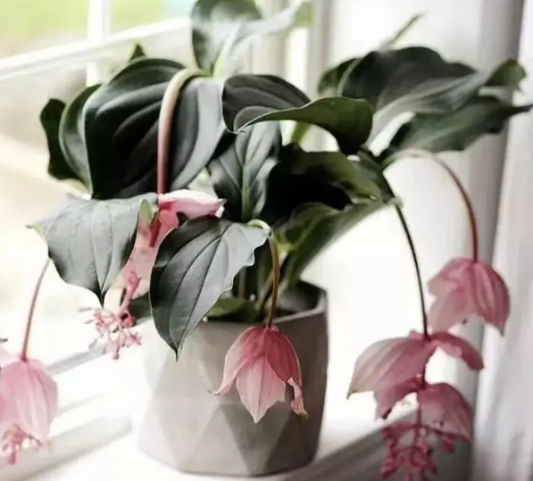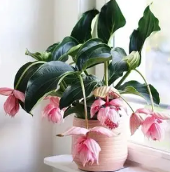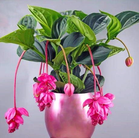 宝莲灯是野牡丹科酸脚杆属常绿小灌木植物,原产于原产于热带雨林地区菲律宾、马来西亚、荷兰等地,2000年左右首次引种到我国,它有着硕大而悬垂的粉色花苞,与我国神话传说中的宝莲灯非常相像。宝莲灯喜欢温暖湿润的环境,最佳生长温度为17~25度。在养护过程中,保持通风的环境和较高的空气湿度非常重要,避免空气过于干燥。