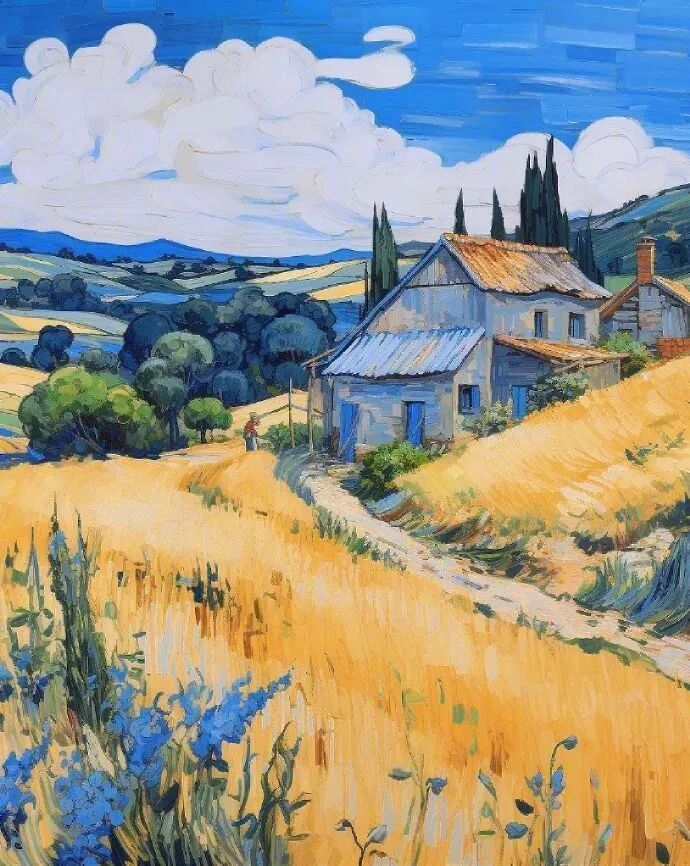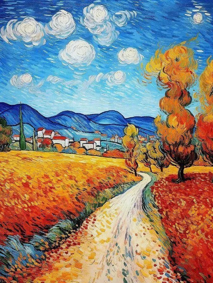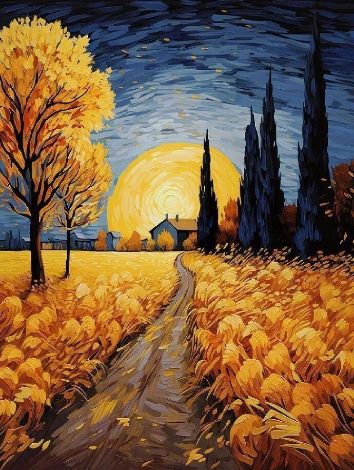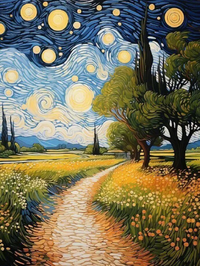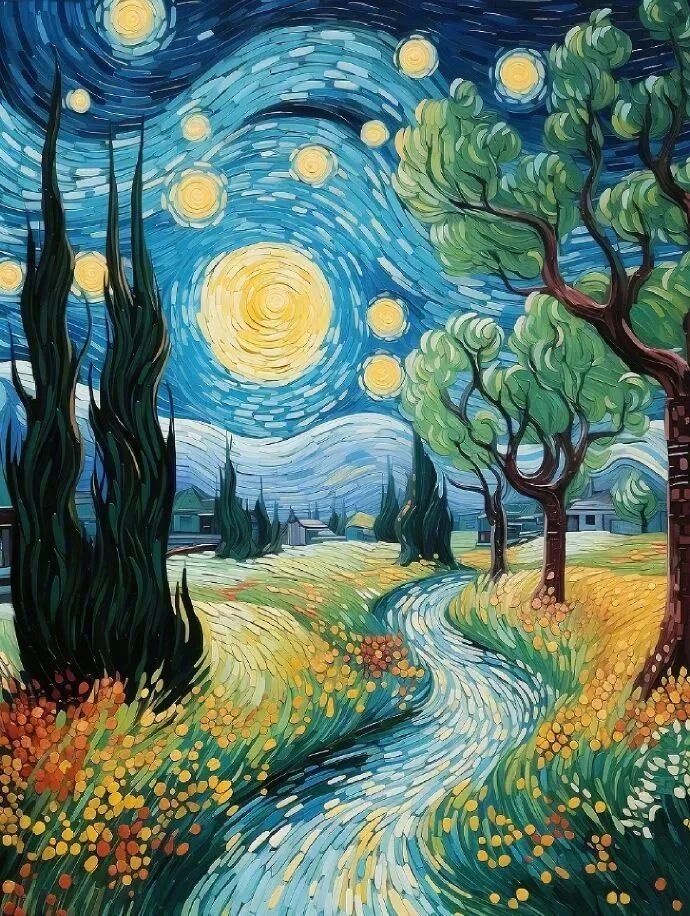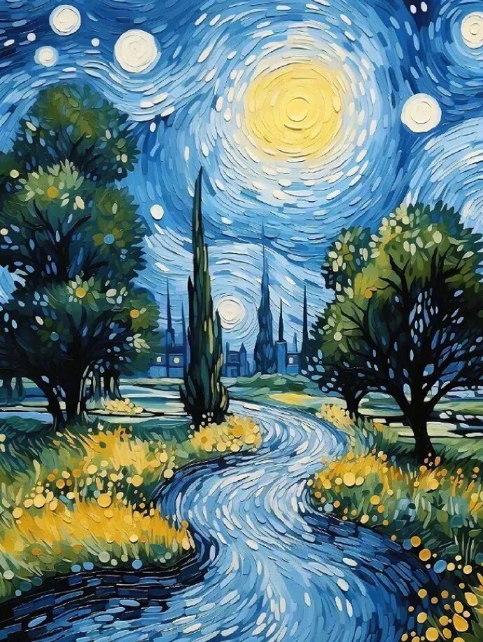 梵高的作品以丰富的色彩和强烈的情感表达而著称。他喜欢采用鲜艳的色彩和粗犷的线条来表现形式和运动,创造出独特的视觉效果。他的画作中经常出现对自然和生命的热爱,以及对人类内心世界的探索和表达。
