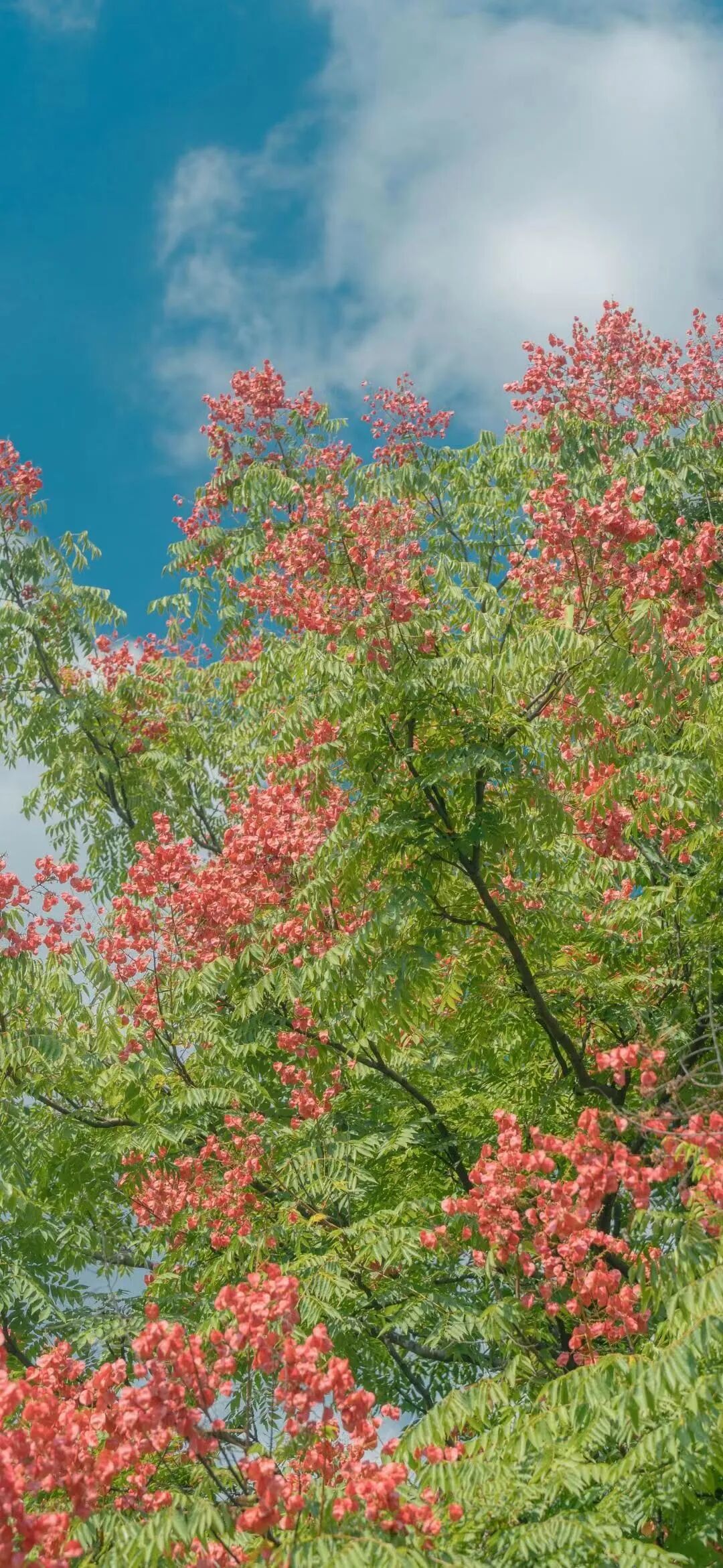 栾树花通常在春季开放,其花朵呈现出美丽的黄色或橙色,有时也可以看到红色或粉色的品种。这些花朵呈现出漂亮的蝴蝶状,花瓣有时候稍微卷曲,使花朵更加迷人。栾树花的花期较长,通常持续几周,给人们带来了一季的美丽景色。