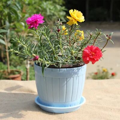 太阳花,原产于南美洲的巴西,其叶似松针,花似小牡丹,因此又名松叶牡丹,或叫半支莲(区别于半边莲),属一年生草本植物。它喜欢温暖、阳光充足而干燥的环境,见阳光花开。