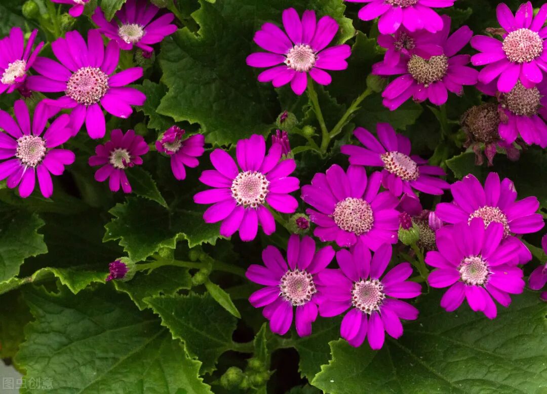 花叶菊是菊科植物中的一种,它的叶片非常的大,像瓜类植物的叶片一样因此得名。瓜叶菊别称富贵菊,黄瓜菊,多年生草本,不过长做1-2年生栽培。瓜叶菊花期1-4月份,适宜在春节期间送给亲友,花色鲜艳,体现了一份美好的心意,被广大花喜爱。