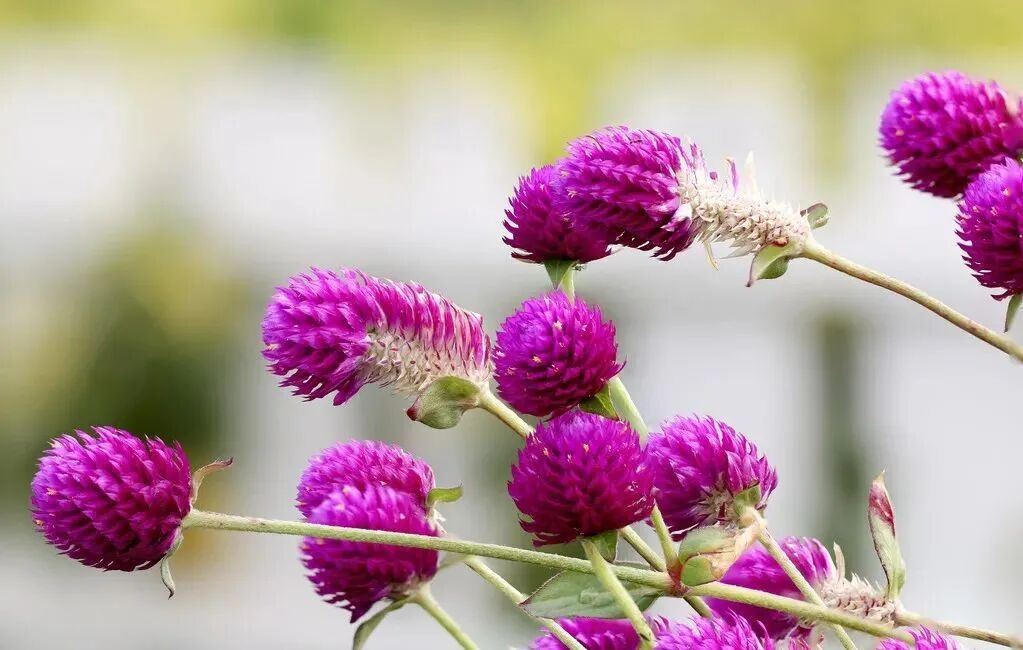 千日红,别名:百日红、火球花,属一年生直立草本植物,高20-60厘米;花果期6-9月。花色艳丽有光泽,花干后而不凋,经久不变,所以得名千日红。千日红喜阳光、耐干热、生性强健,原产美洲热带。